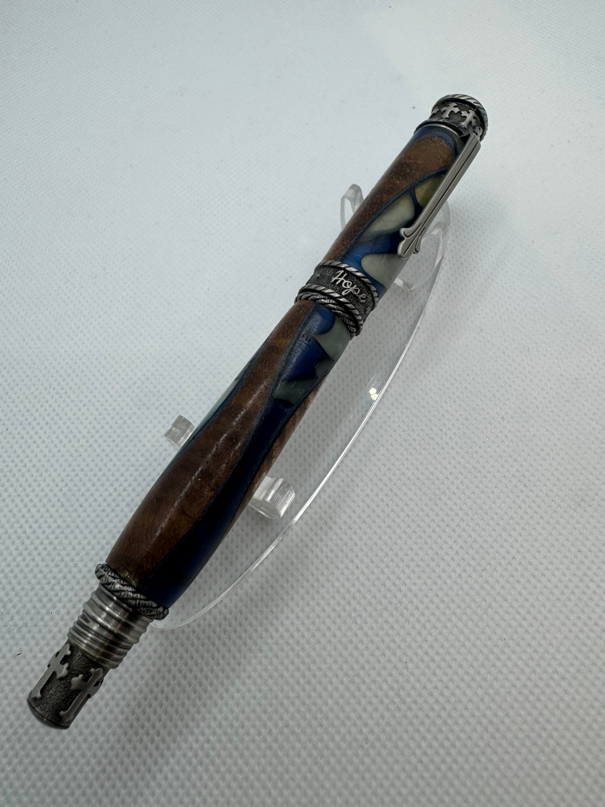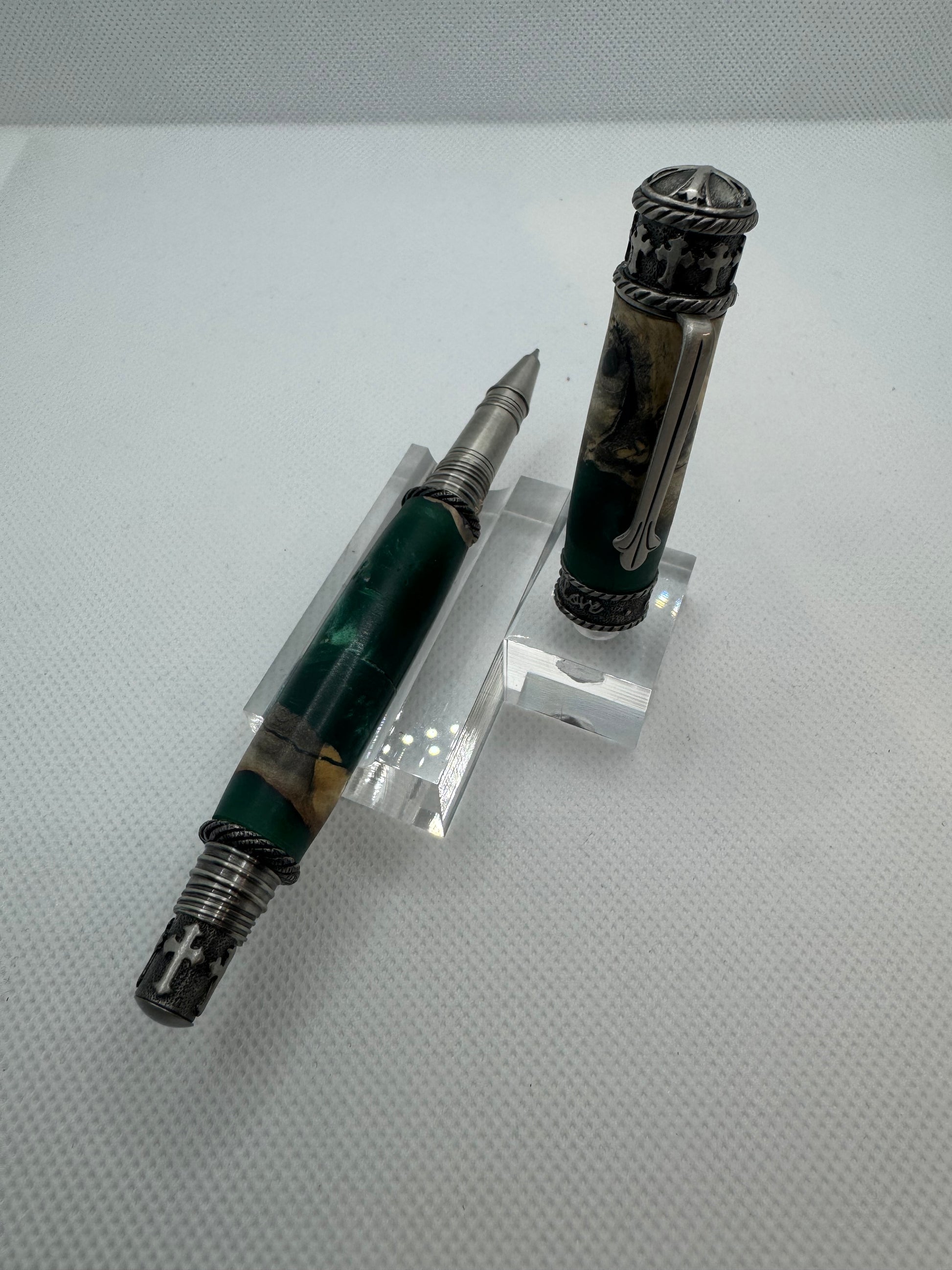 Introducing our luxurious Faith Hope Love roller ball pen. Crafted with intricate Faith, Hope, and Love designs, this pen exudes elegance and exclusivity. The center band features these elements, while the top showcases exquisite cross designs. The braided rope detail symbolizes the trinity. Elevate your writing experience with our stunning roller ball pen.