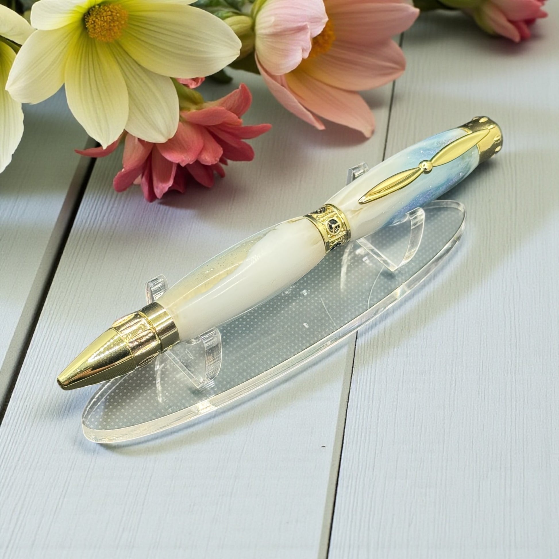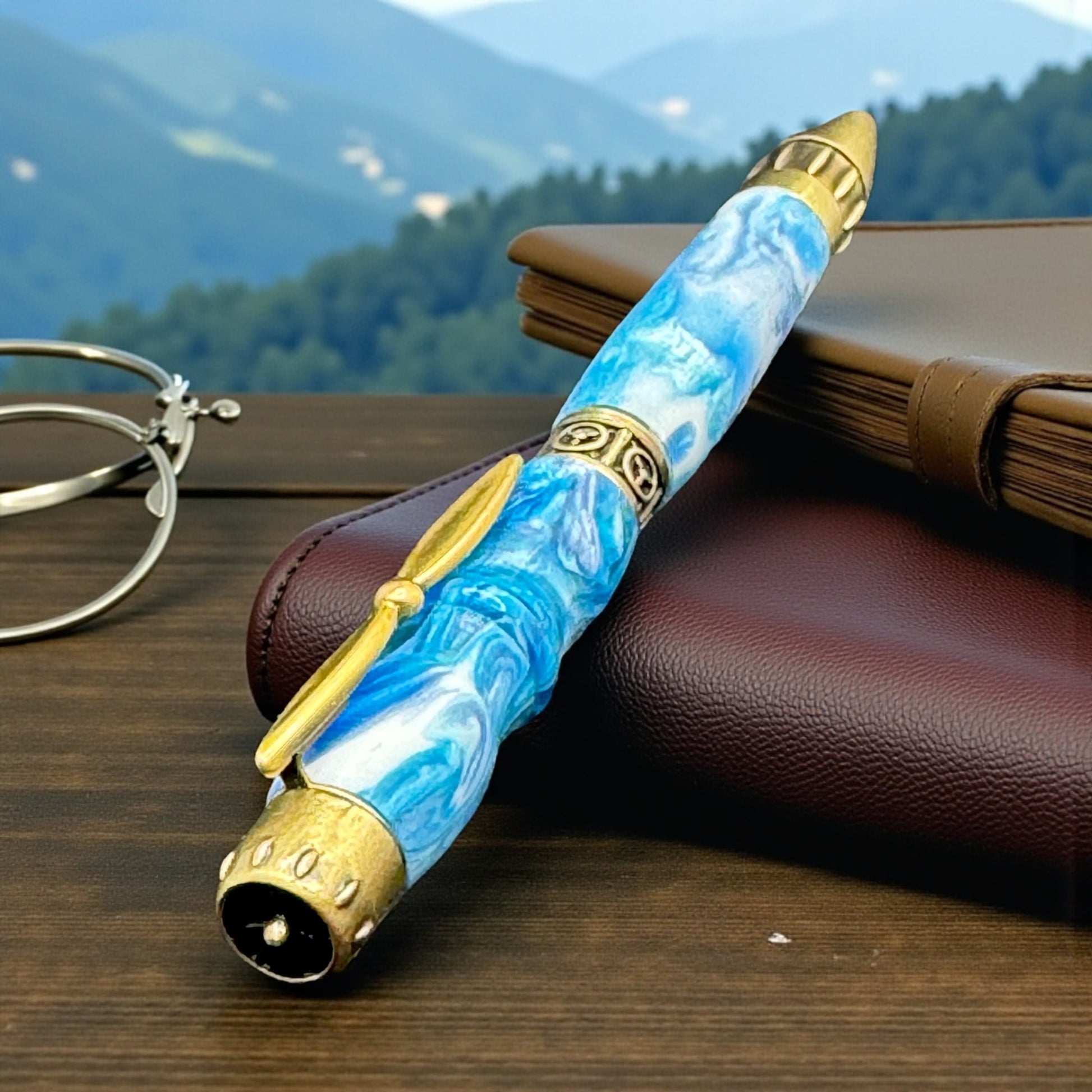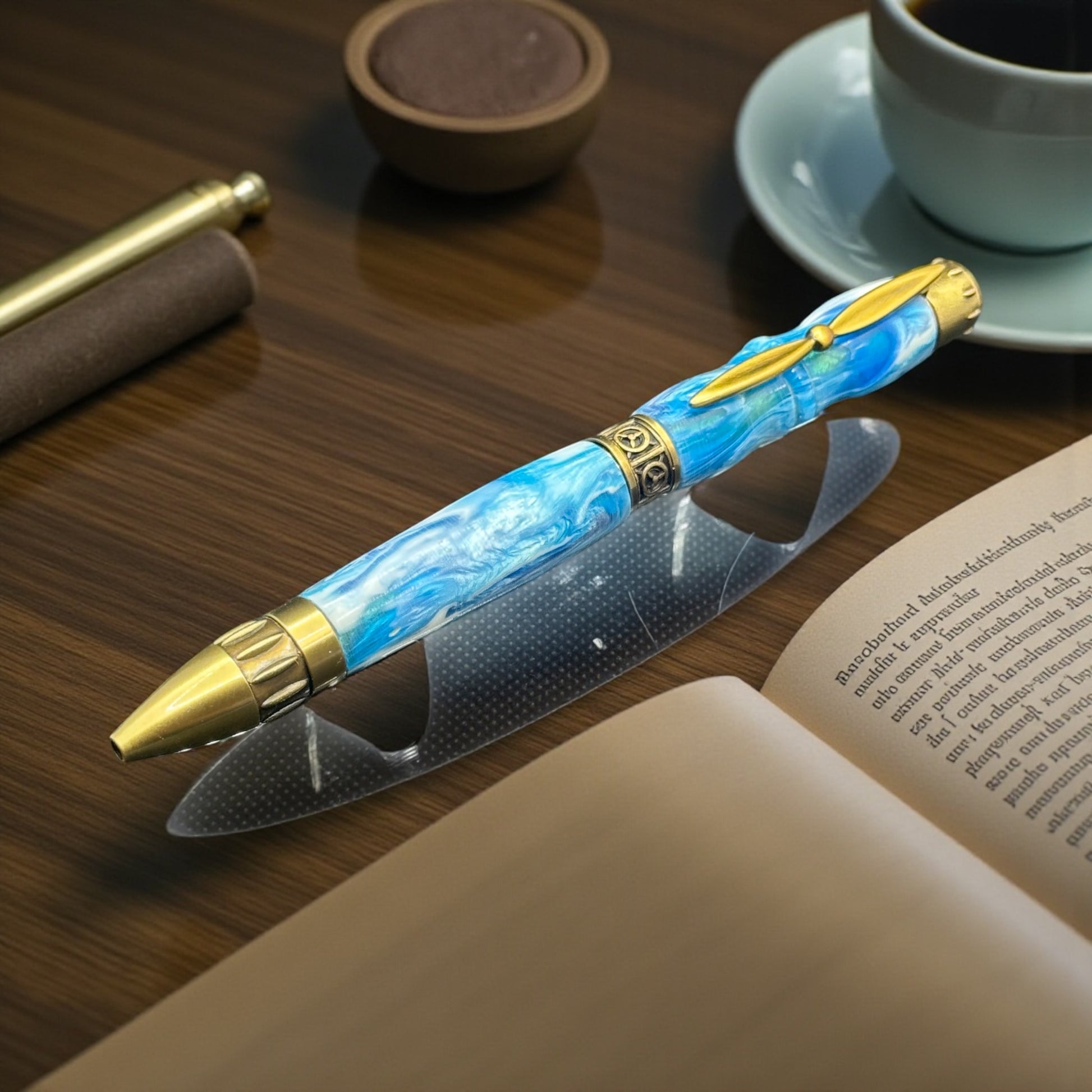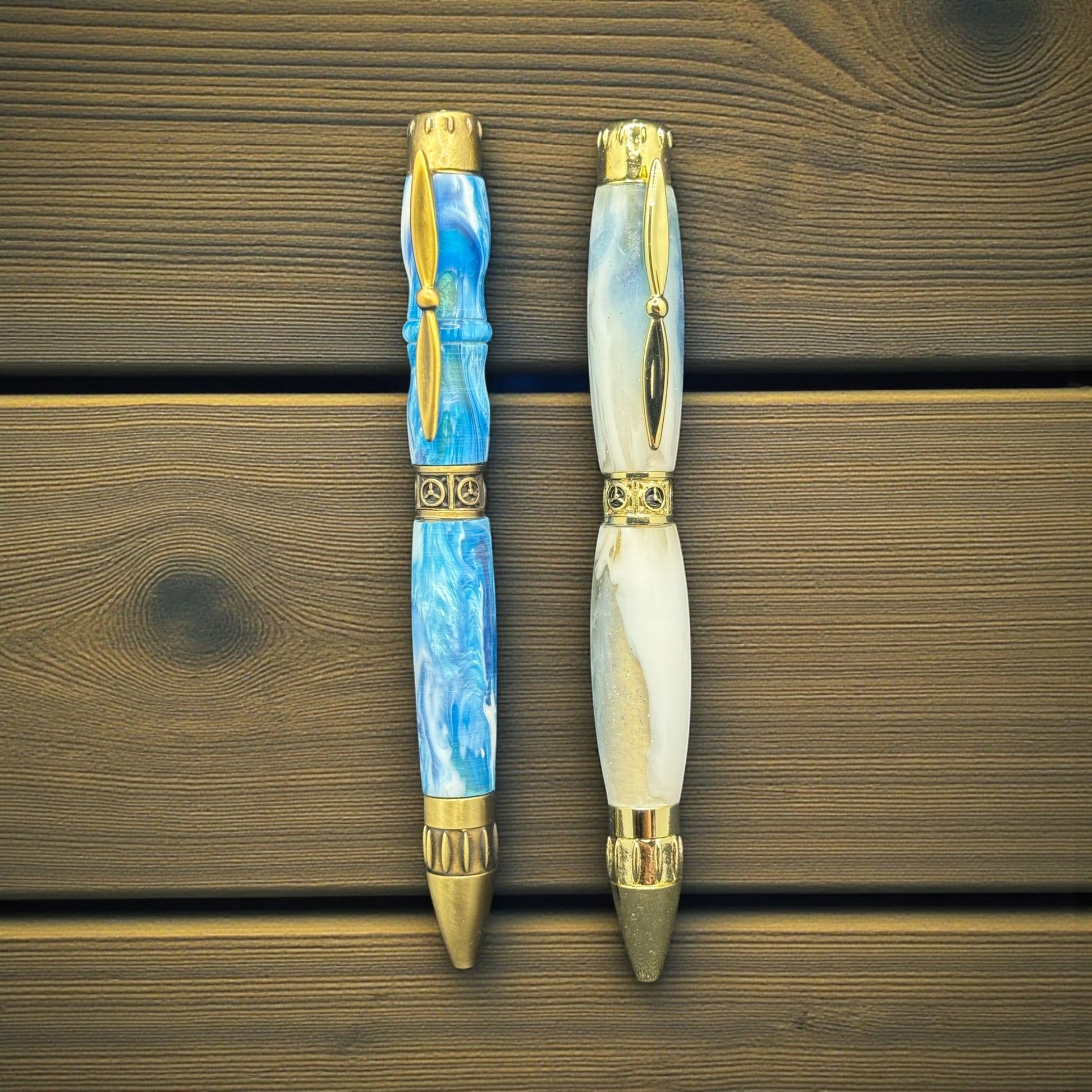 Get ready to take flight with the Prop Plane Elegance pen! Designed for single engine plane enthusiasts and those who love to fly for fun, this unique pen features a propeller clip, front engine tip, and exhaust top. Let your writing soar with style and quirkiness.