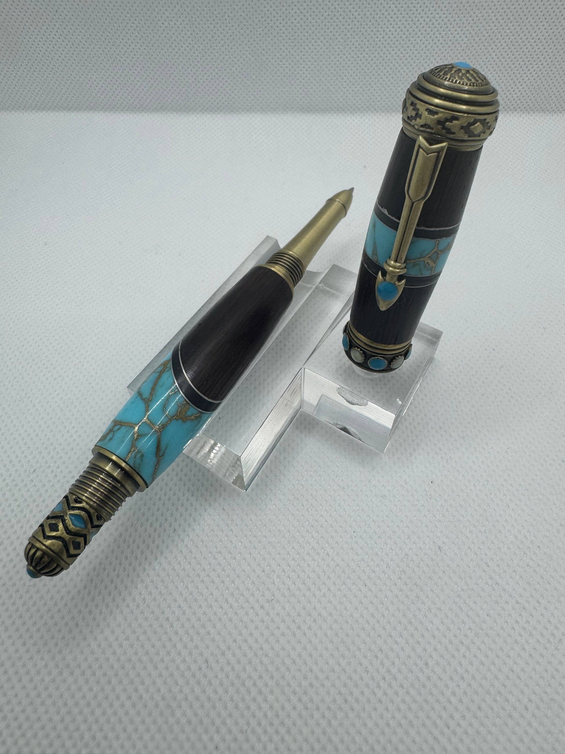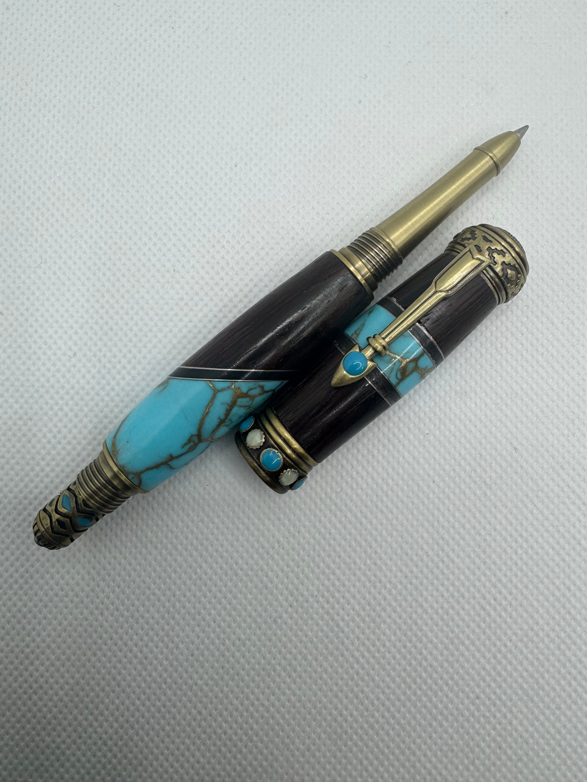 This is a genuine Torquoise pen made with a Southwest themed rollerball kit. Ever wanted a piece of the Southwest history this is your pen.